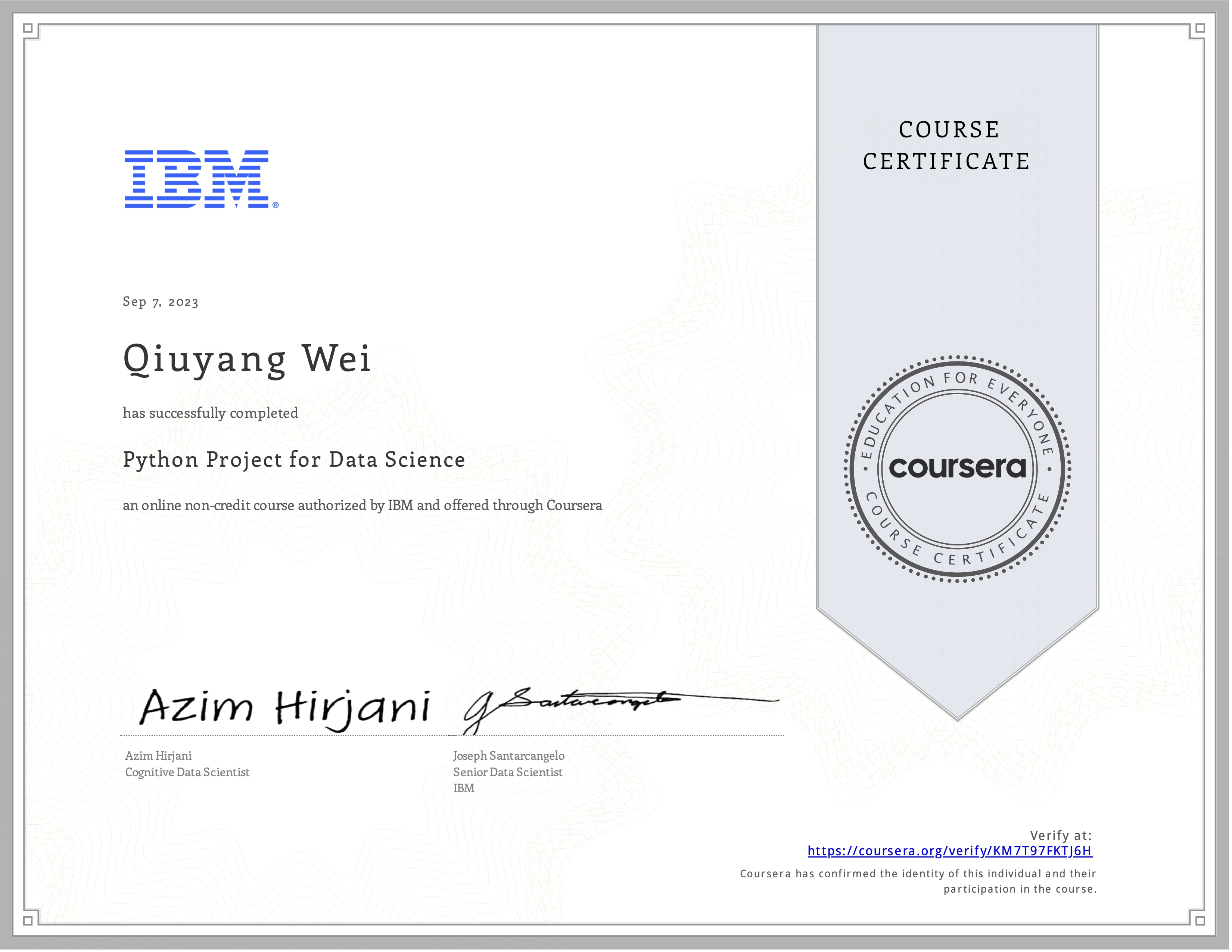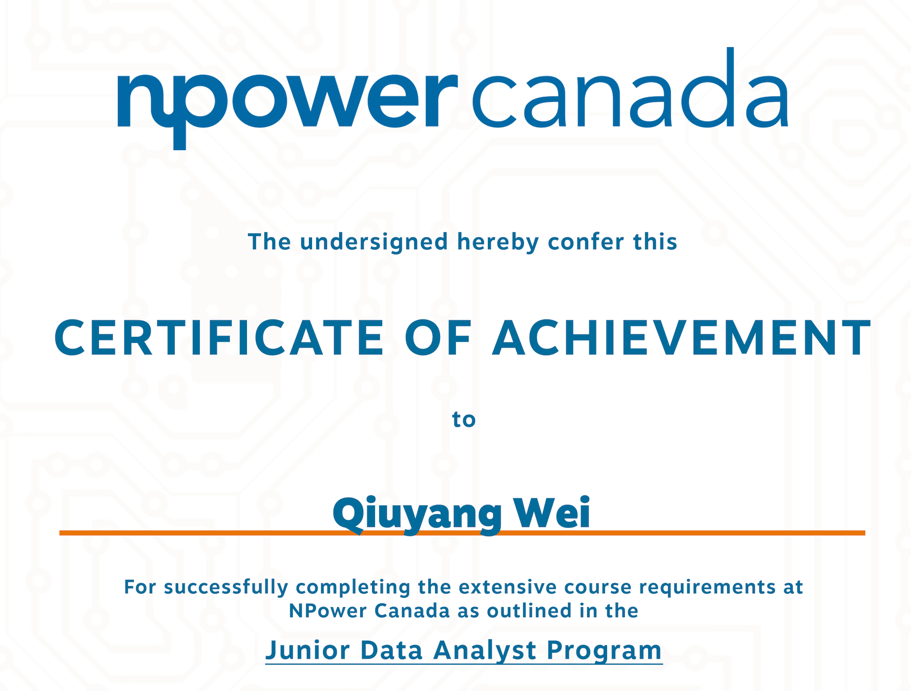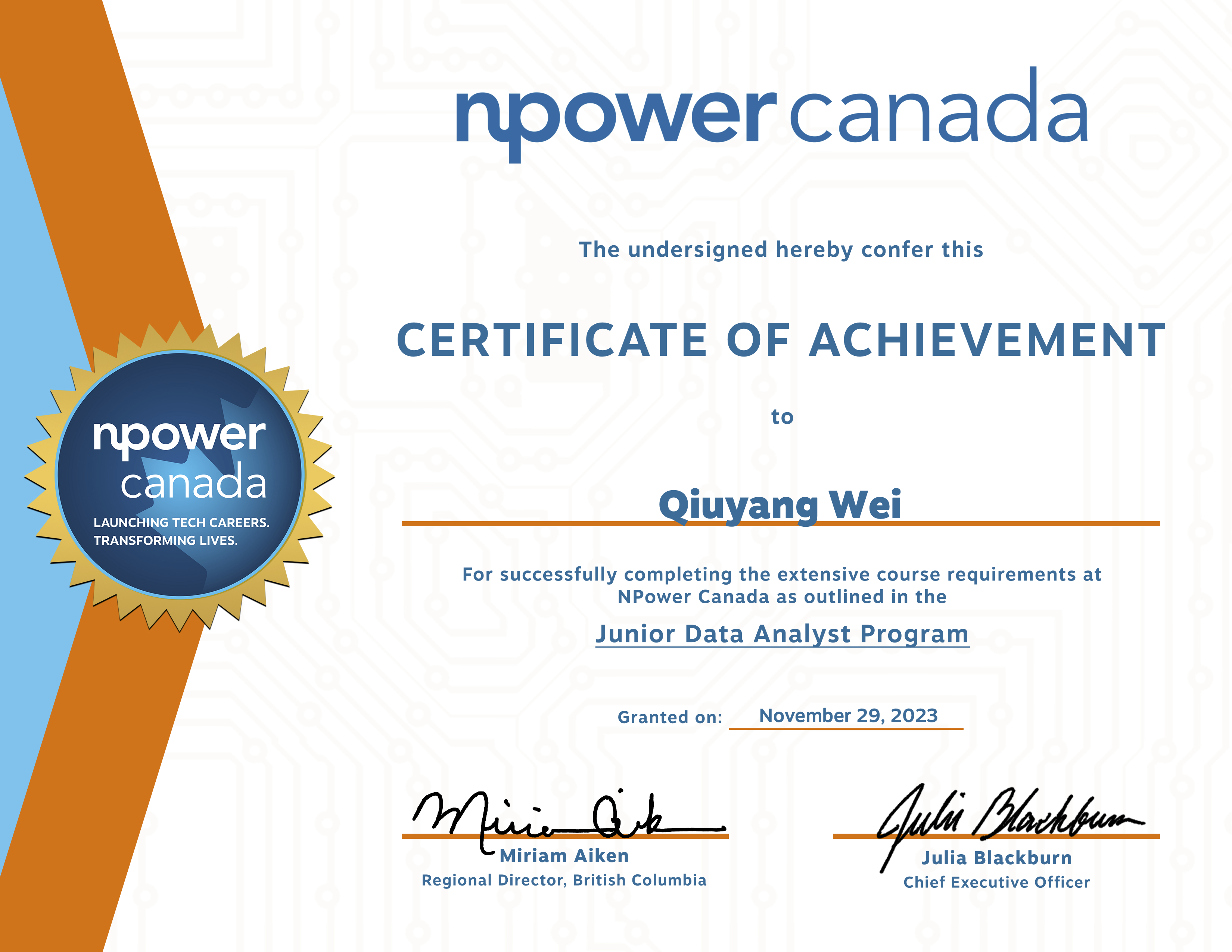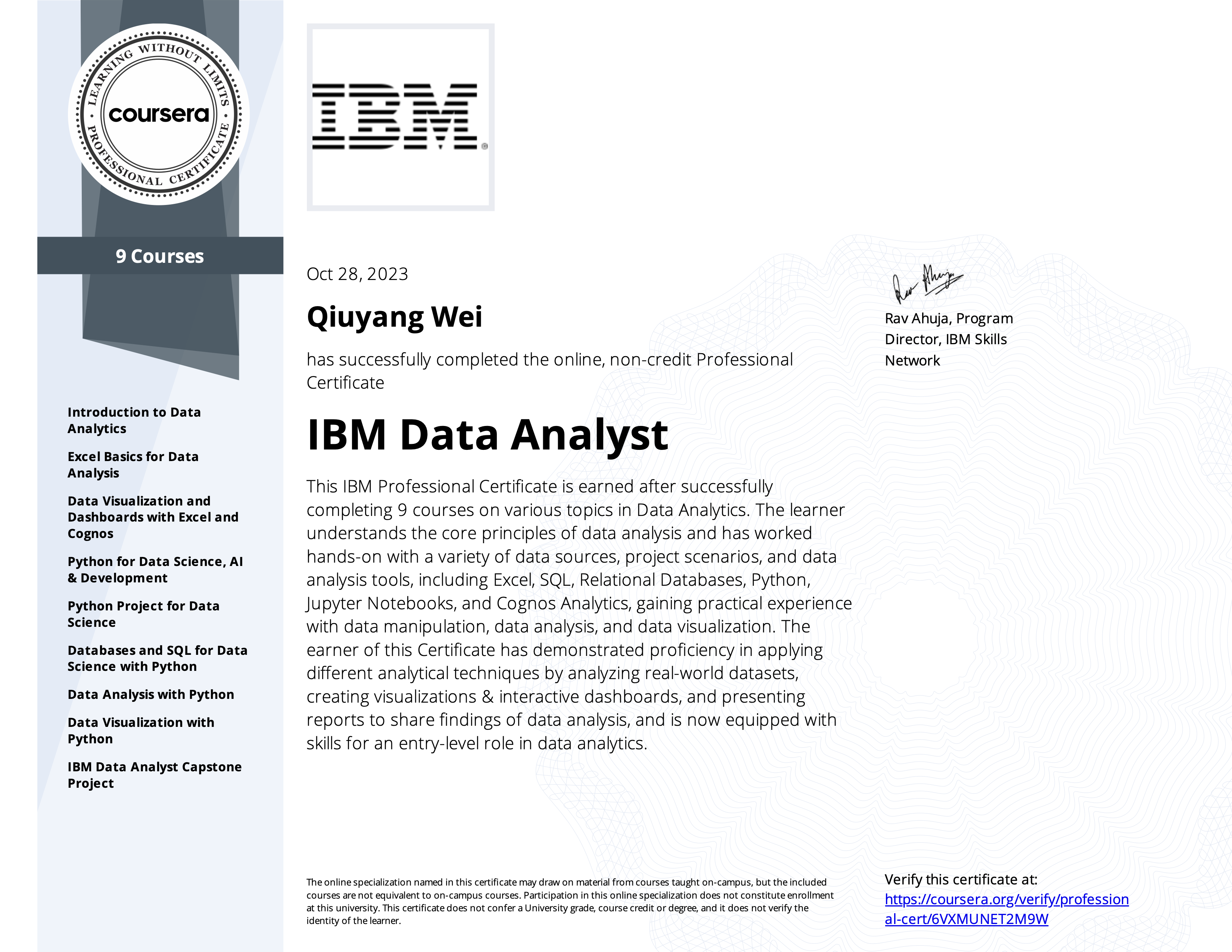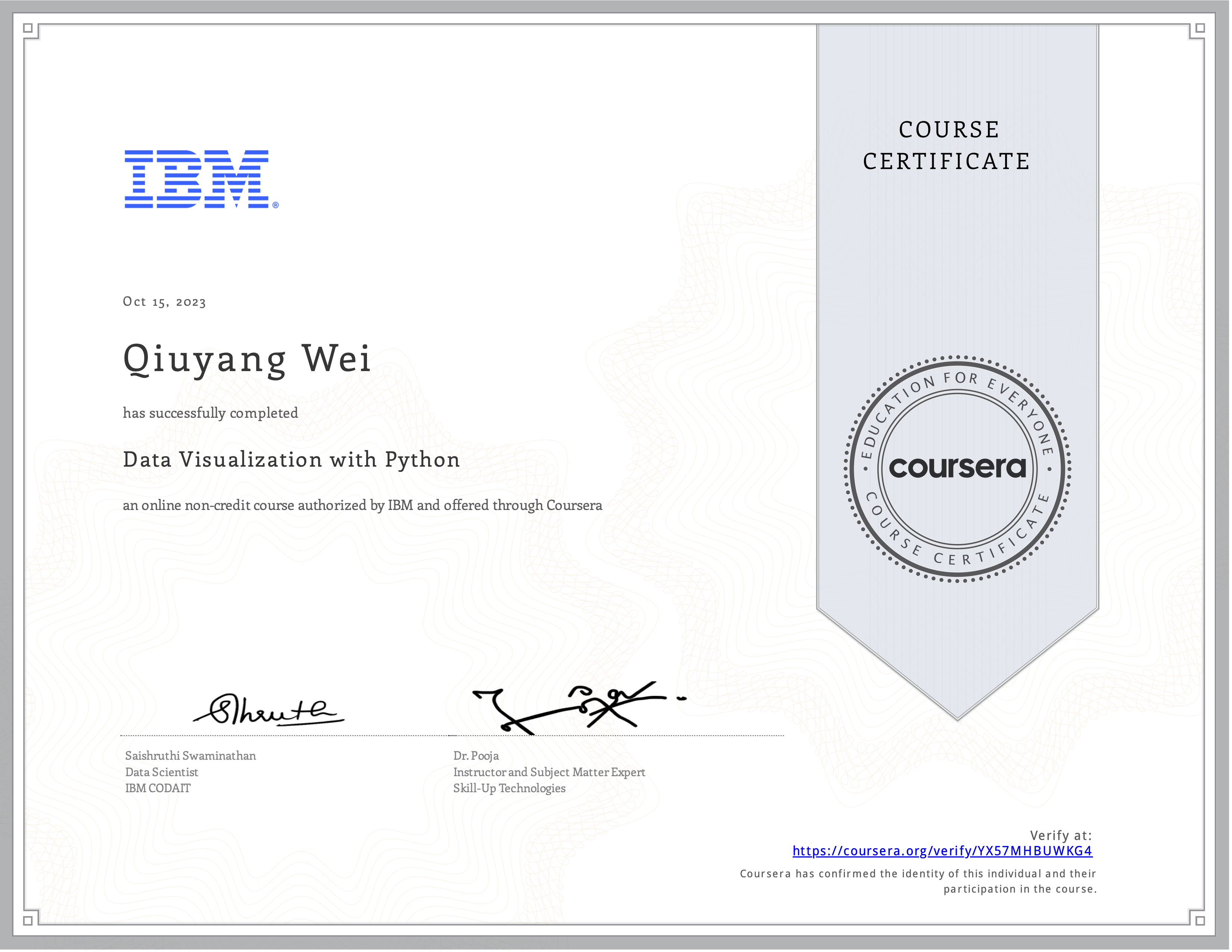 data visualization. The earner of this Certificate has demonstrated proficiency in